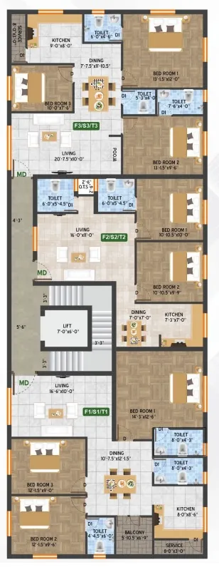 2 x 4 Vitrified Tiles flooring for Living, Dining, Bedrooms & Kitchen.